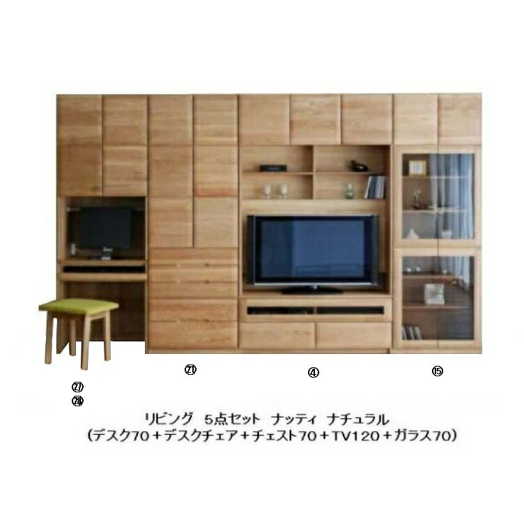 モリタインテリア製 リビング5点セット ナッティデスク70+デスクチェア+チェスト70+TVボード120+ガラス70ホワイトオーク材セラウッド塗装ナチュラル色のみ開梱設置送料無料(北海道・沖縄・離島は除く)